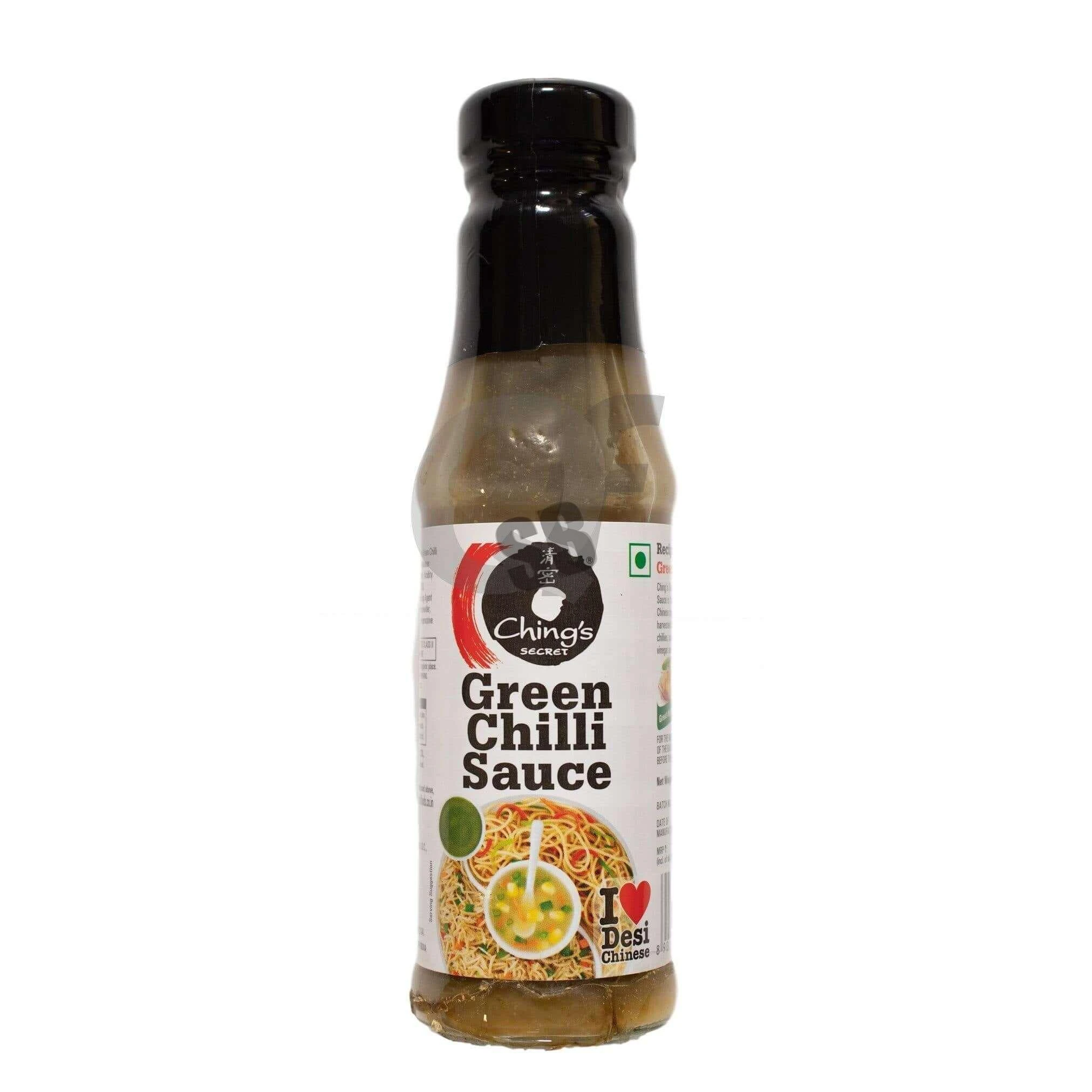 Chings green chilli sauce. Green chilli sauce is perfect for the Indo-Chinese recipes. Sauce is from the Jwala green chillies, vinegar and spices. It is added to noodles and fried rice to enhance the flavour.